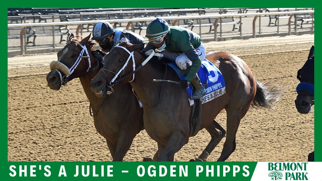 She's a Julie added a second Grade 1 victory to her ledger, when displaying a powerful kick at the top of the stretch before running down Ollie's Candy to the inside of Point of Honor to win the 52nd running of the Grade 1, $300,000 Ogden Phipps by a nose at #BelmontPark.